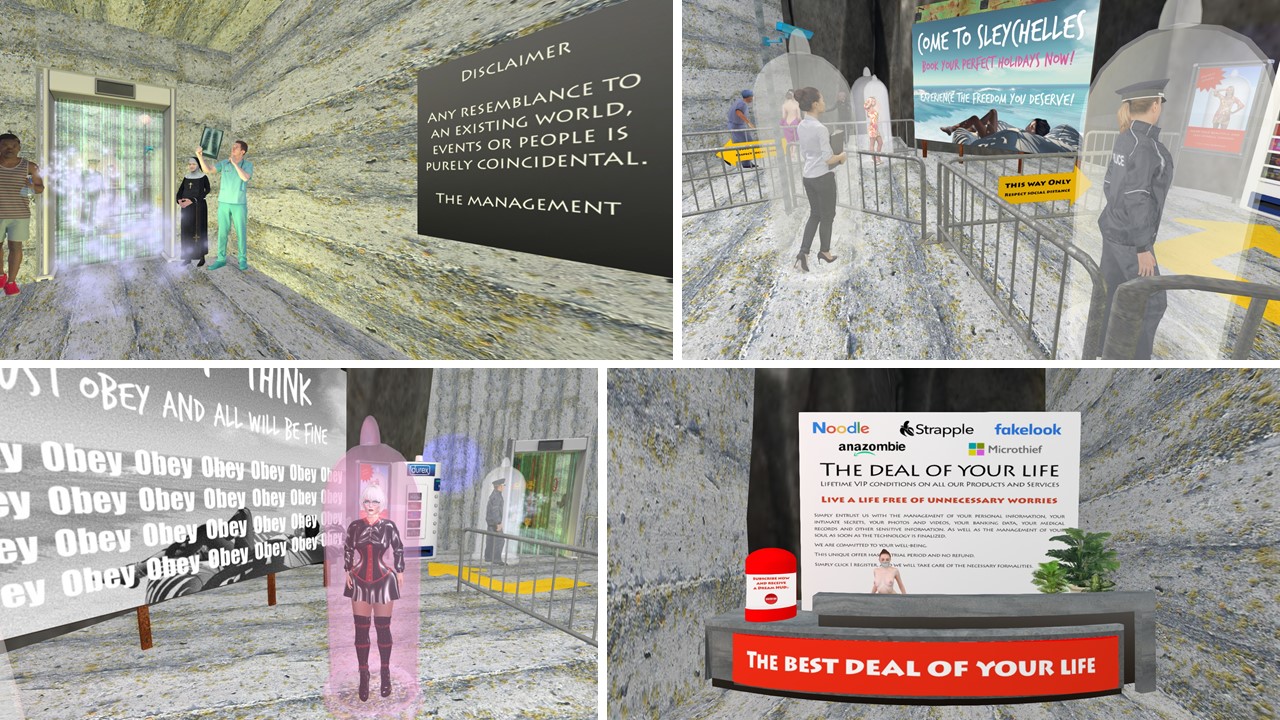 Ambre wrote about “Mishaps”: “Since a good part of my SLife consists of getting into all sorts of misadventures, the theme was a natural one. Another common thread in my SL presence is a form of spiritual activism. My virtual existence might as well serve a purpose, right? It is therefore with pleasure that I invite you to discover my new exhibition, “MISHAPS, the Daily Life of Ambre Singh”, generously hosted by The NovaOwl Sky gallery.”