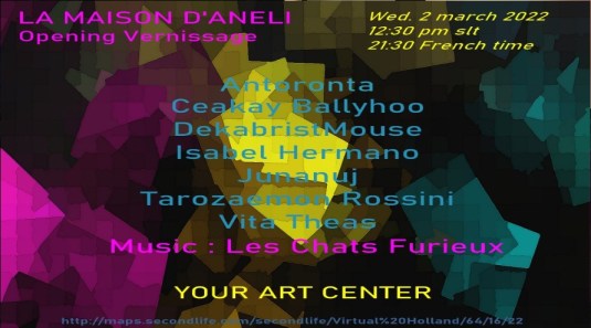 La Maison d’Aneli is owned by Aneli Abeyante. Through her gallery she brings together all forms of creativity in RL and SL and the featured artists come from around the globe. Aneli’s intention is to “put her gallery in the service of artists, so that the world can be better, exchanges and meetings probably contribute even though it seems to be particles.”