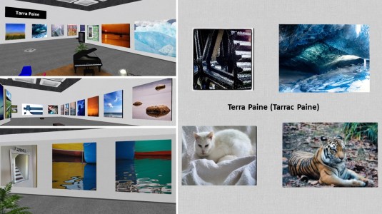 Fractal art is usually created with the assistance of a computer. Right where you enter his skybox there’s a slide show in which Taro explains the basics of fractals from the scratch, from a simple line, to a complex fractal based on iteration of formulas which combine real and imaginary numbers. He furtheron lays out the different types of fractals. Knowing what’s behind the exhibited fractals they become even more fascinating.
