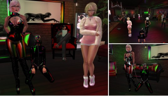 I locked her up and took her to Psi’s realm where Faye (Boy Serenity) joined us. We had fun talking with each other and with the other guests there. And I was looking good with Flo and Faye at my side and feet. After Flo left for bed I took Faye to Carnal Intentions shortly before I went to bed myself.