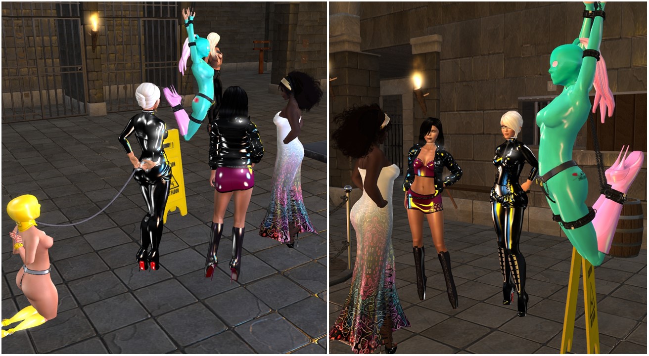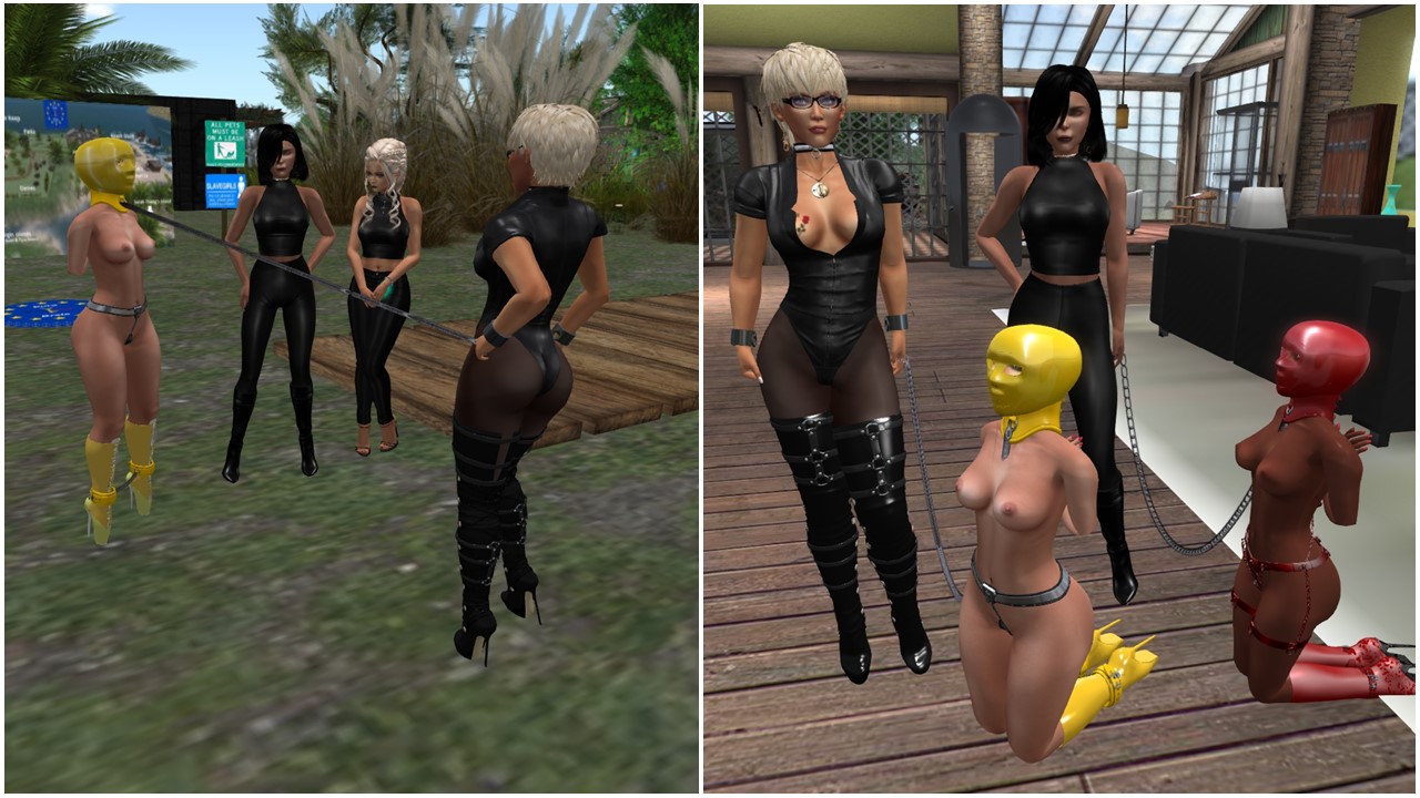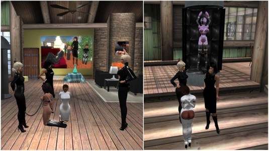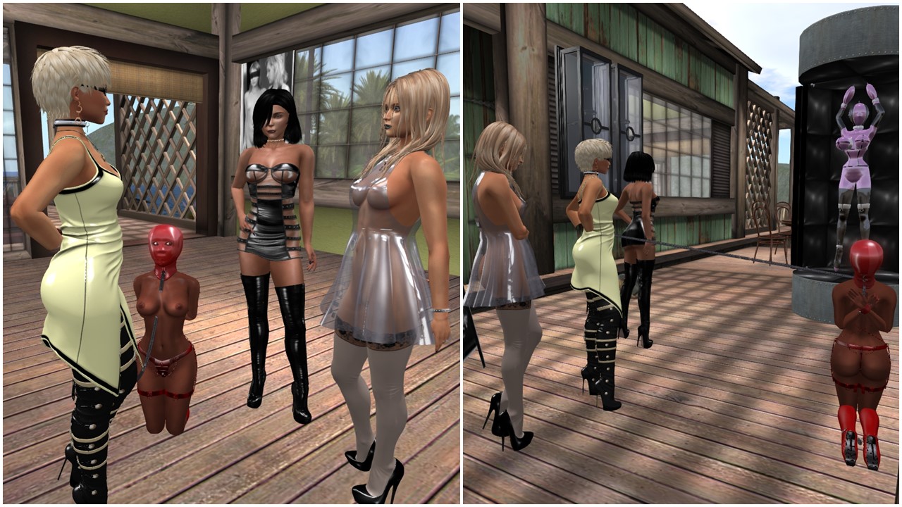 March 19th: Diomita and Jenny visiting slave slut cecy at Psi’s realm together with slave drone Flo II (AnneWanne) – left side is slave drone Flo II’s restricted view on the scene