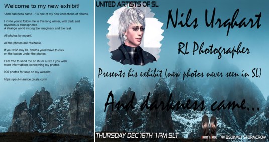 Nils Urqhart (Paul Maurice in RL) is a French photographer in RL. He takes his photos mainly in French Alps and other French mountains (Vosges, Jura, Bugey, Aubrac…). Nils has a lot of exhibitions in different SL galleries every year.