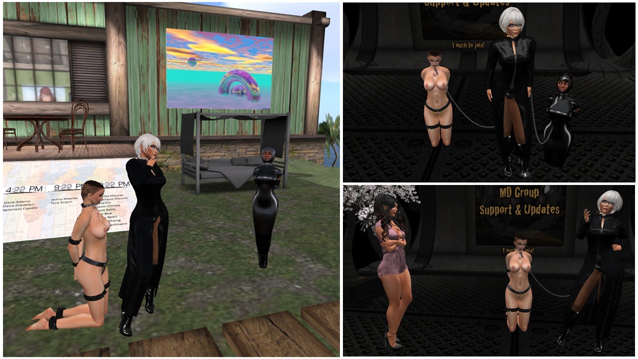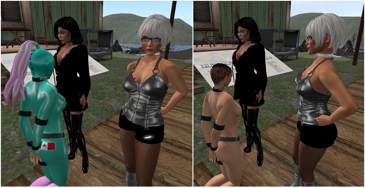 Mistress and I had fun! In the meanwhile slave slut cecy had come inworld and we went home after about an hour to see her. We know that cecy has a problem seeing us as her timezone and RL prevents her from going online at the times we’re present. While we saw our slave slut regularly when we first met her and collared her later on, it’s now more than a year that we just see her on weekend days and often just for a short time. In addition we can’t interrupt what we’re doing just because slut comes inworld. Mistress Jenny asked cecy if there’s any change in a foreseeable future, but there isn’t according to cecy.