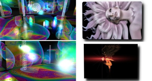 The new Art Galerie Haxue is in a huge building on a sky platform. The building presents Puce and Cayenne’s art over 3 floors above ground and several floors under the building. The floors above ground are transparent glass floors so that you see all 3 floors when you enter the building. Spread over all 3 floors you find 3D art playing with light effects, with permanent chainging patterns. to see the effects you should set your viewer to midnight and of course you should have advanced lighting switched on.