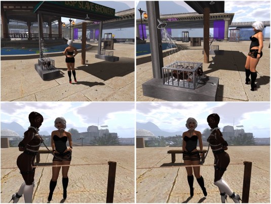 At night I started at home in our dungeon and began to get a bit more familiar with the new Mistress Chair. We had placed a copy in our dungeon (the other one is on our skybox). Mine had to lick my boots and she did well. Then I put a RF hood on Jenny’s head, pulled it tight and added some restrictions and we began a little tour exposing her at Mesmerize Dungeon first and then at Heavy Bondage Club.