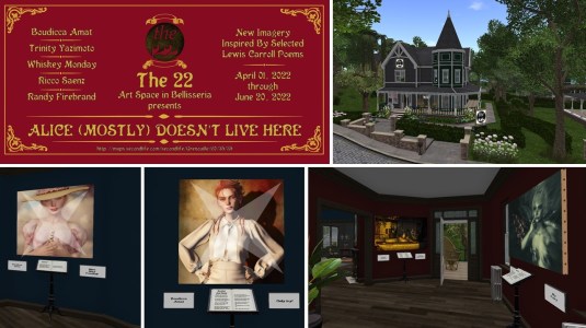 The 22 art space in Bellisseria, Second Life, is promoting an exhibition “Alice (mostly) Doesn’t Live Here” comprised of visual interpretations of selected Lewis Carroll poems running from April 01, 2022 through June 20, 2022.