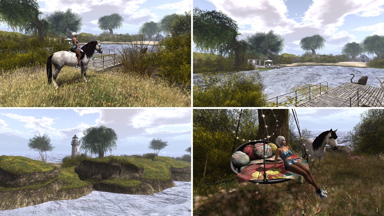 Broken is a beautiful sim that convinces with it simplicity, with the vastness of the green meadows, with its space. The few houses are decorated and furnished inside with love and there’re more than enough opportunities to enjoy togetherness.  For me personally the riding was big fun. Thank you, Talia (Natalia Corvale) for sharing your place with the public. I enjoyed my visit (and horse riding) a lot.