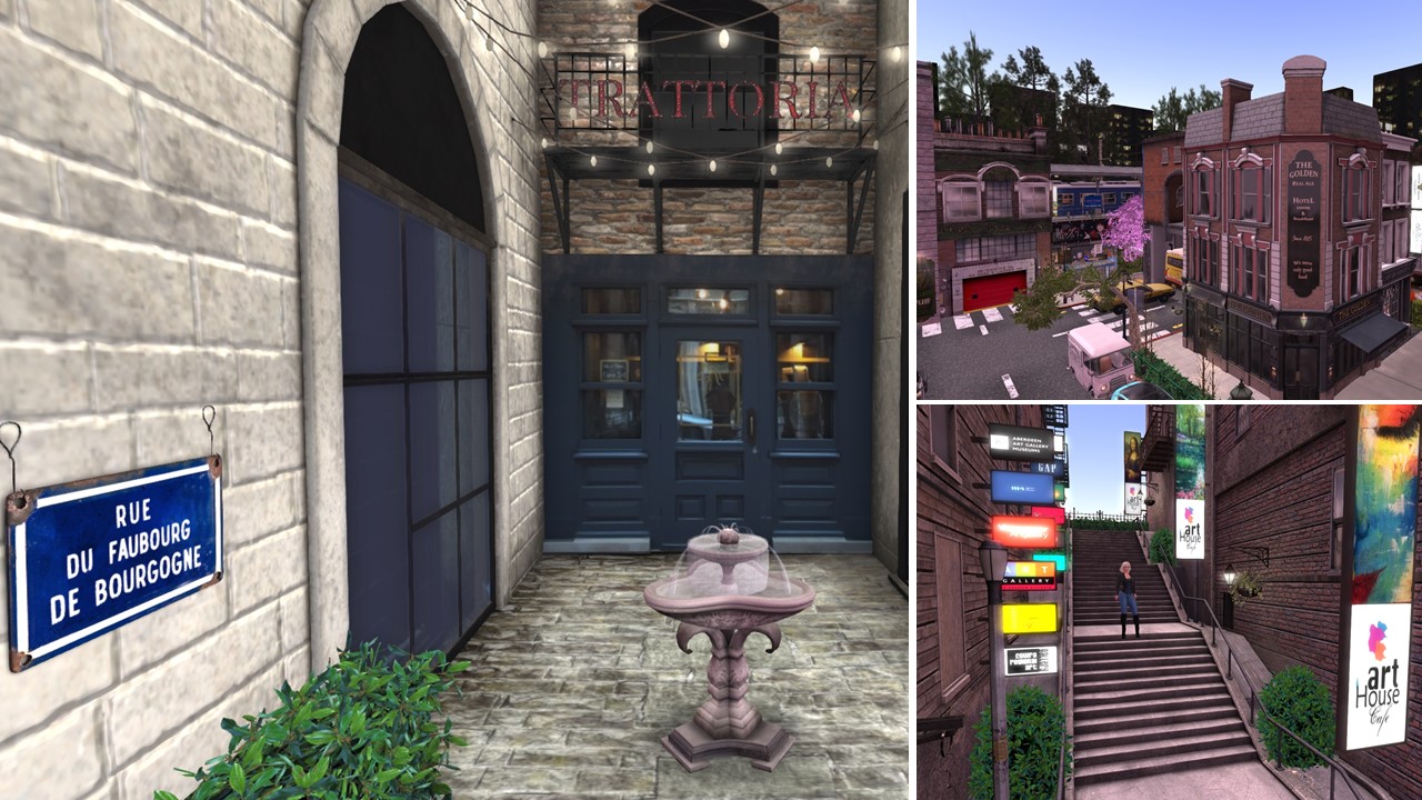 Let me start with my simploring tours about art in Second Life. I admire the creativity of artists in this virtual world, I visited galleries like Lyric Art Gallery, La Masion D’Aneli, 20][21 gallery, Rey’s Gallery, Shui Mo Gallery, Milly Sharple’s Fractal galleries, Daphne.Arts and Deva Westland’s Galerie Des Beaux-Arts. I visited and wrote about 7 installations of Cica Ghost, who continues to conjure a smile in my face with every of her funny whimsical creations. I saw fewer art installations since the Linden Endowment for the Arts (LEA) is on hold. But some private initiatives luckily provide space or the artists themselves dedicate their own space. Just recently I saw an exhibition of Mistero Hifeng’s art at Valium Creek Art Park. I saw “The Mind Melter” by Thoth Jantzen at VeGeTaL PLaNeT, I saw “Lalawood” by Theda Tammas, Yoon (onyxxe), Iono Allen and JadeYu Fhang at La Maison d’Aneli as well as “Binary Radiation” by Nino Vichan. I saw Twilights Doors by Bo Zano (Bozanonl Resident), “The Outer Garden” by bisou Dexler, “Inferno” by Noke Yuitza, “Avaloir” by Eupalinos Ugajin, Undertones by Oluja (artistik Oluja) and “Delicatessen – Tell Me a Story” by Meilo Minotaur.