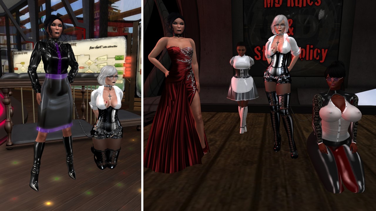 Sept 22nd: Diomita and Angelique with slave Flo at Mesmerize Dungeon / Sidonia (Luzie Nymphea) with a random victim of her