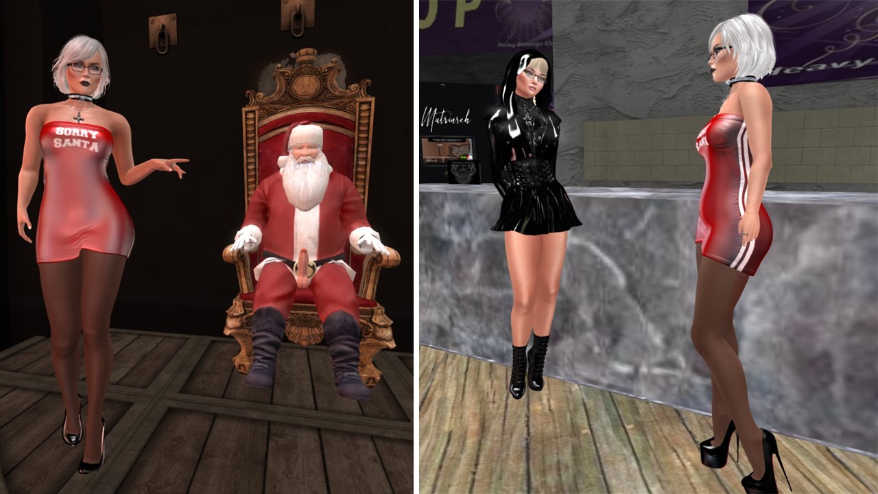 December 25th: Diomita with Santa at Club DeLust / Diomita and Angelique at Heavy Bondage Club