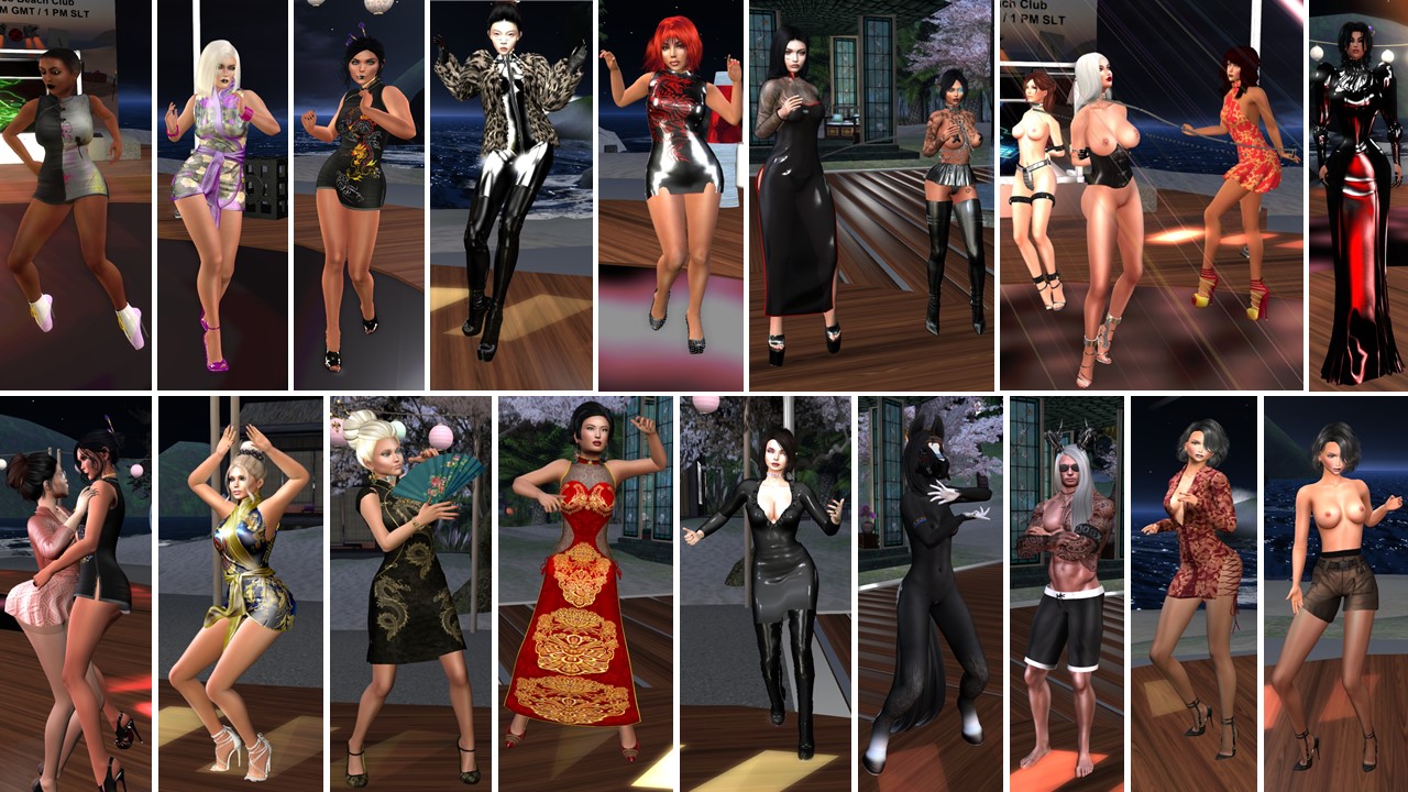 February 12th – Friday night party: Flo, Diomita, Mistress Jenny, Faye, Baroness Capelo, Gravity (TheriaEriker), Suzi M (SuziMeyer), Laura (laura00175), Dr. Mara Lynn (Maralyn Corleone), Claven Albatros, Genesis Chamberdoll (Fang Starlight) (upper row), Faye and Mistress Jenny, Della Randt, Starbright Wingtips, Sara (SaraRandall), Claire (maddh4tt3r), Firefly Starlight, Talos (Talosborn), Virgo Babii, Virgo Babii (lower row)