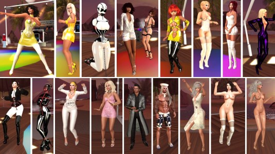 March 12th: Mistress Jenny, Diomita, slave Melissa, Claven Alabtros, Laura (Laura00175), Baroness Capelo, Kira Skytower, Cathrin (Cathrin22), Rubber Bitch (pingledingle) (upper row), Faye (Boy Serenity), Ann (Transann), Della Randt, Starbright Wingtips, Orson Neutron, Talos (Talosborn), Virgo Babii, Claire (maddh4tt3r), Virgo Babii stripped (lower row)
