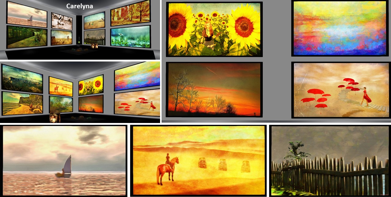 The amount of pictures is overwhelming. I estimate that Bambo selected about 100 pictures from her pool of artwork. The three 3D picture installations int he corner were new for me. Bamboo arrange her pictures together with 3D objects, giving the pictures a new environment instead of displaying them at walls. Some of her pictures in these corner installations change permanently. I suspect that these installations look even better with an environment set to midnight. Unfortunately I forgot to change my environment and used “Midday” for my pictures.
