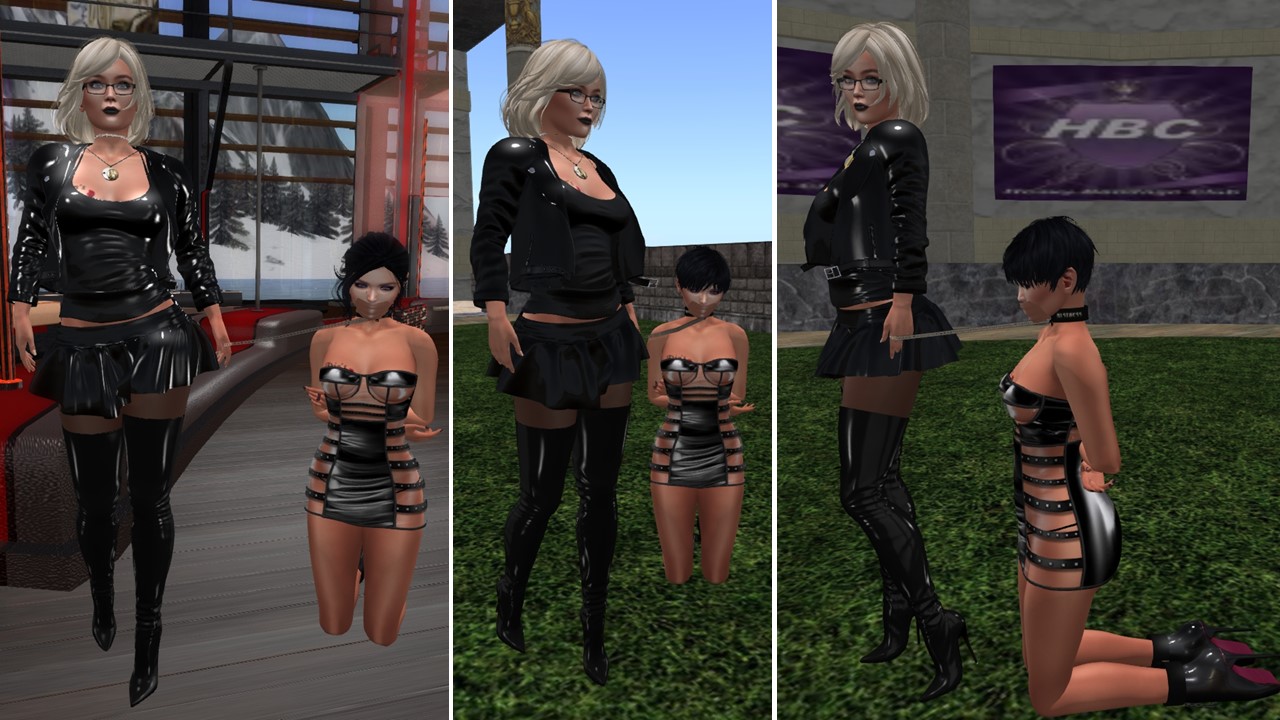 I spent Thursday afternoon, February 13th, with Mistress Jenny at my feet. When she came inworld I made her wear her cuffs, locked them and gagged her with a tapegag, then I took her to club Domme a Domme to expose her kneeling as my property. We caught up with our news and went on to Heavy Bondage Club. There was more going on, Ann was there with 3 other rubber dolls and two subs approached me. One was surprised that I had my Mistress kneeling at my side *grins*. It is great to be in control and I once again enjoyed every second of it.