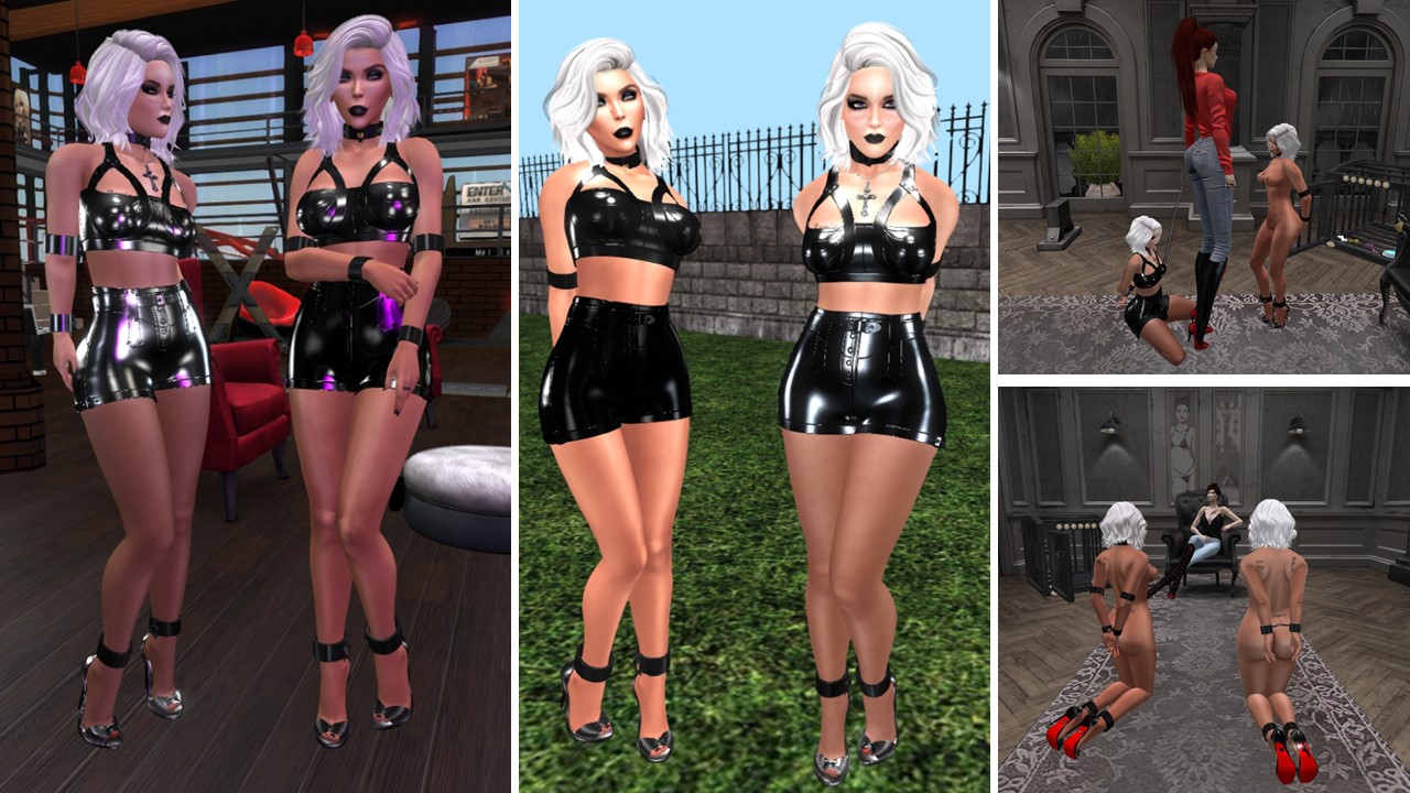 Monday, September 13th, Jenny and I spent way more time inworld during the day than we both had planned. The night before Jenny expected to be not inworld before night. I went inworld in the morning to visit a gallery and Jenny had just logged in. We changed into a 3rd twin Jenny outfit with white hair and went looking for trouble at club Domme a Domme and at Heavy Bondage Club. we had fun – but didn’t find any trouble.