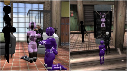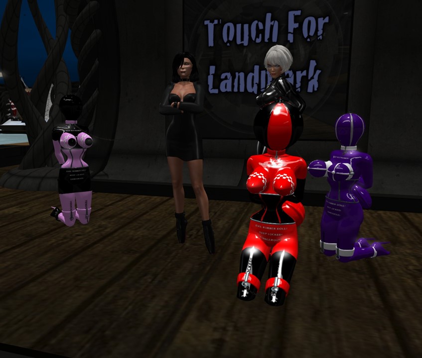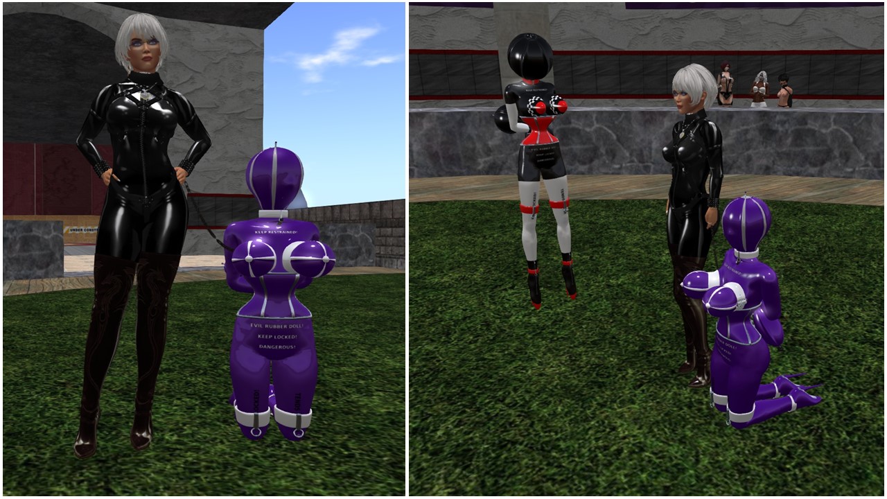 Angelique and I took her and Rubber Doll slave Flo to Heavy Bondage Club. I had fun reading profiles and watching slave Flo firing torpedos – none did provide another doll though.