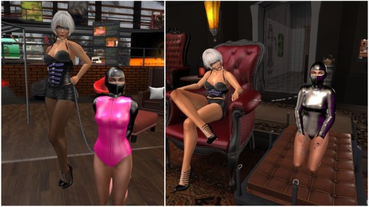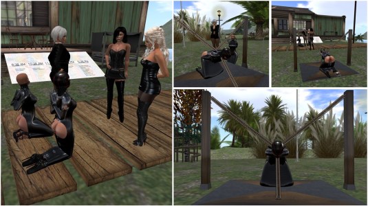 We went home quite early to say good night to slave Flo and slave kelly and I summoned Gwen over so that she can explore our island. Then I retreated with Jenny to take advantage of my green light. I had bought a new suit for her, that we saw at Mesmerize Dungeon the first time. It’s called gag suit and consists of a body and a hood. It is colourable by the keyholder. Jenny had to wear it and I took her to club Domme a Domme to expose her and to enjoy my control. I even shut off hearing for her and had her all for myself in private chat. Last but not least I went to club DeLust with her again and had her kneeling next to me.