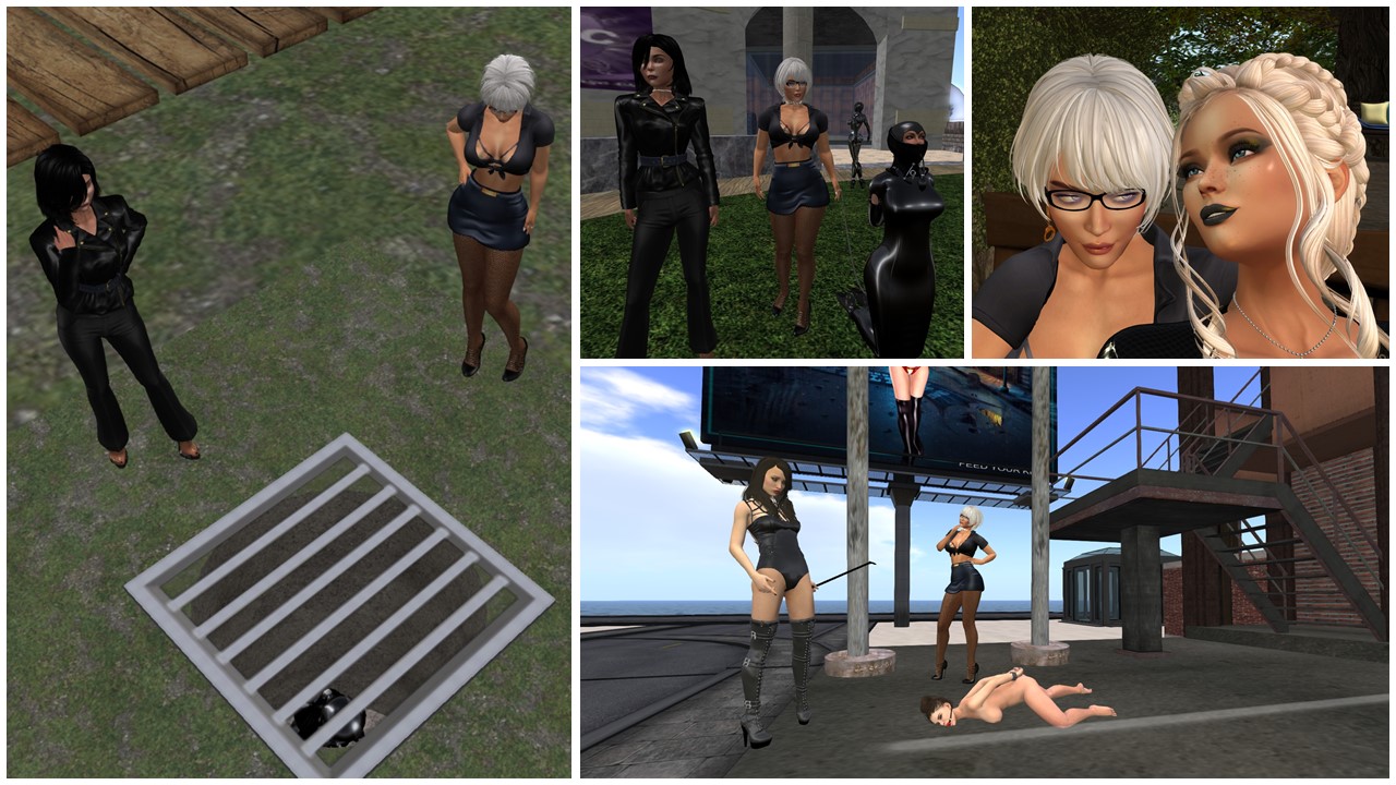 At night, Mistress Jenny wasn’t present again due to her RL. When I came inworld, Angelique was about to leave to bed. But I got my hug at least. slave kelly and slave Flo were inworld and I took them to our studio again. I was not fully satisfied with my new profile picture and made another one that better shows my sub collar. Now Mistress can decide which one I should use for my profile. slave kelly and slave Flo both waited patiently until I was done. I decided to take a studio picture of the slaves and me for our slideshow, then I took the slaves to Mesmerize Dungeon shortly and then to Psi’s realm again.