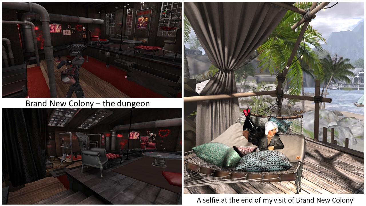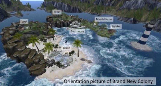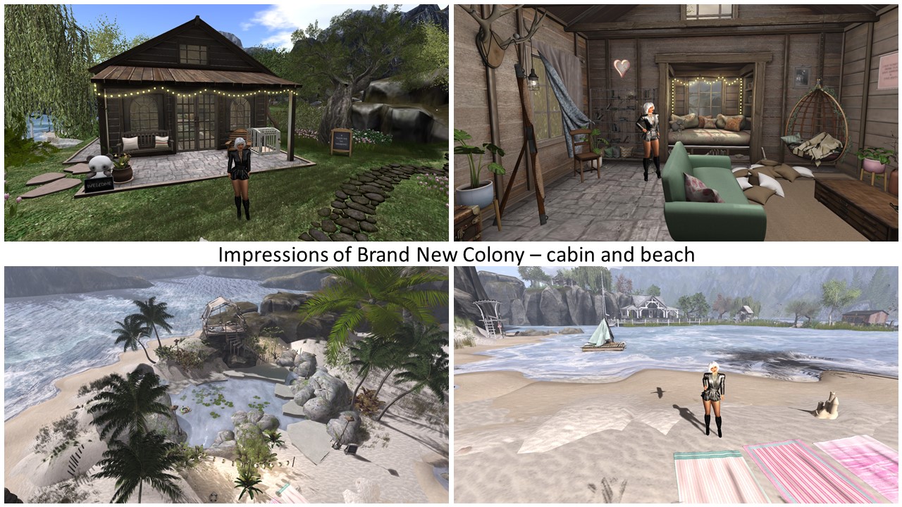 There’s nothing inside but the end of a tunnel that leads you below the big massive rocks to the other part of the island – and to a house with a garden in which art of ilyra chardin is exhibited. Is this the “My Secret Garden?” Honestly I have no idea. It is nice and tasteful though – or is “My Secret Garden” the farmstead, that covers most of this part of the island beyound the massive rock? I had a look around and enjoyed the silence and the peace. There’re also some children playing (mesh dolls) but ecept ot them, I saw none a the whole farmstead. At one end of the farmstead is a crooked and high frame house and I climbed on it just for the view over the island. From there I could see a beach which was my next point to visit.