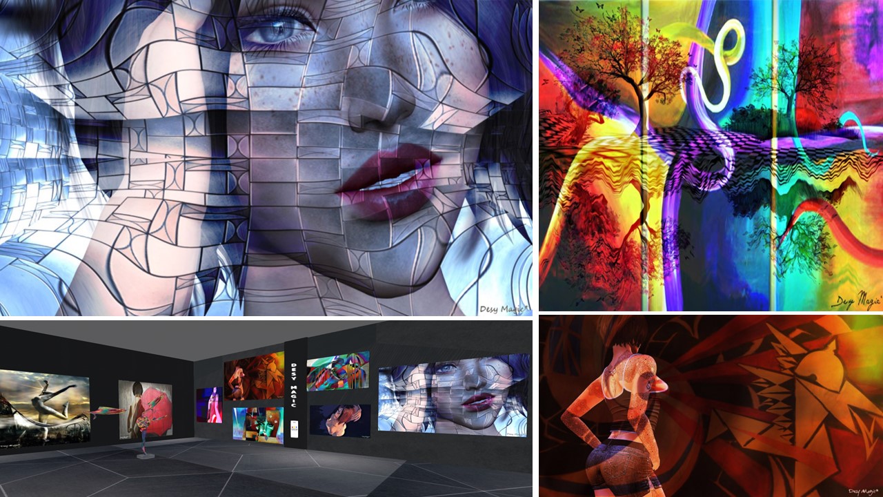 It is the 3rd time that I came across the art of Desy Magic. I saw her as participating artist at La Maison d’Aneli in 2019 and in 2020 (read here and here). Desy is in Second Life for more than 13 years (just like me). Daisy Magic is a passionate photographer and she has a unique and colourful style in which she processes her pictures and makes them real eye catchers. Daisy often works with several layers, a base motif covered by abstract forms – or vice versa. She wrote about herself:
