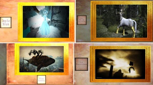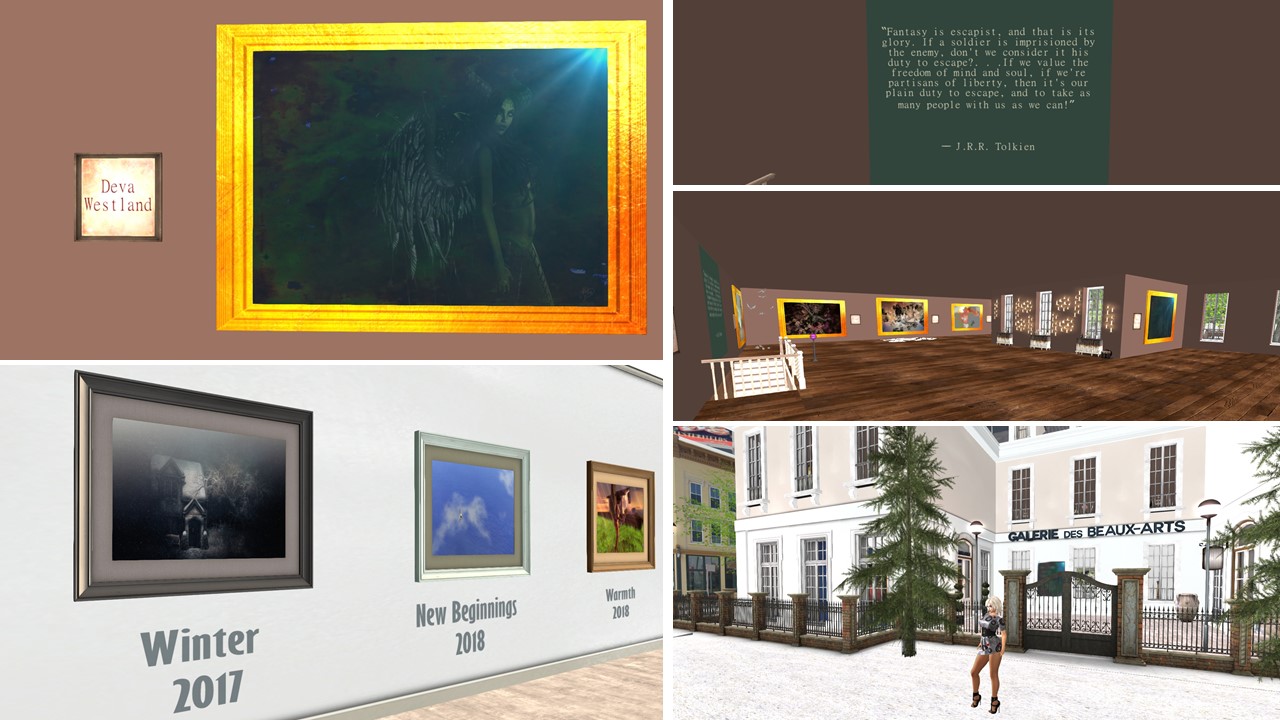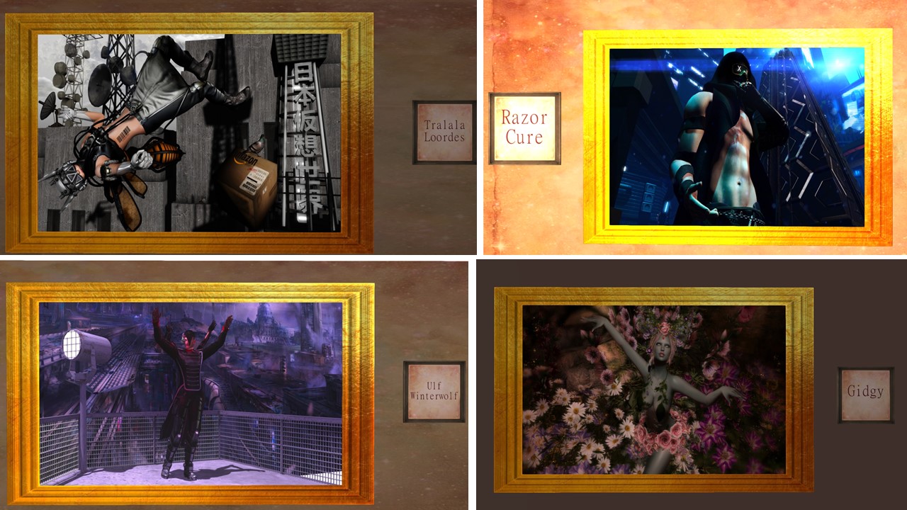 Let me start with my simploring tours about art in Second Life. I admire the creativity of artists in this virtual world, I visited galleries like Lyric Art Gallery, La Masion D’Aneli, 20][21 gallery, Rey’s Gallery, Shui Mo Gallery, Milly Sharple’s Fractal galleries, Daphne.Arts and Deva Westland’s Galerie Des Beaux-Arts. I visited and wrote about 7 installations of Cica Ghost, who continues to conjure a smile in my face with every of her funny whimsical creations. I saw fewer art installations since the Linden Endowment for the Arts (LEA) is on hold. But some private initiatives luckily provide space or the artists themselves dedicate their own space. Just recently I saw an exhibition of Mistero Hifeng’s art at Valium Creek Art Park. I saw “The Mind Melter” by Thoth Jantzen at VeGeTaL PLaNeT, I saw “Lalawood” by Theda Tammas, Yoon (onyxxe), Iono Allen and JadeYu Fhang at La Maison d’Aneli as well as “Binary Radiation” by Nino Vichan. I saw Twilights Doors by Bo Zano (Bozanonl Resident), “The Outer Garden” by bisou Dexler, “Inferno” by Noke Yuitza, “Avaloir” by Eupalinos Ugajin, Undertones by Oluja (artistik Oluja) and “Delicatessen – Tell Me a Story” by Meilo Minotaur.