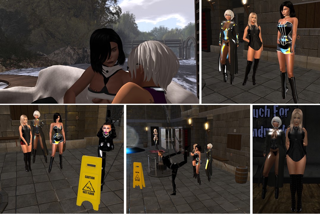 March 28th: Diomita with slave Flo at home / Diomita with slave Flo and doll slut cecy at EvaTek (lower right and middle) / doll Jill Ormstein (upper middle) / Diomita with slave Flo at Psi’s (left)
