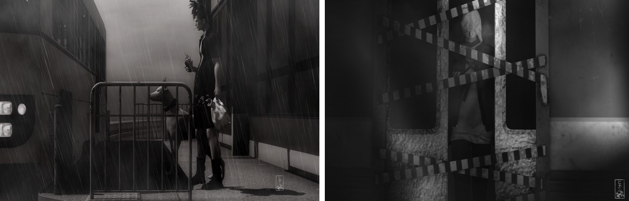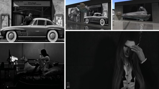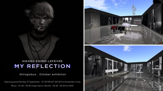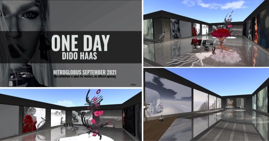 The exhibition “Crescent Moon” consists of 17 pictures of Adwehe. Once again the outstanding exhibition space with it’s mirroring floor and open sky adds a lot to the experience of it. Adwehe added light effects, hence you should use the preset environment settings in your viewer (in Firestorm top menu “World” -> “Environment” -> “Use Shared Environment”.