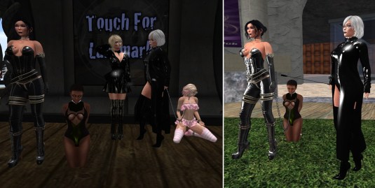 We went to club Domme a Domme and to Mesmerize Dungeon and of course we attracted some attention. At Mesmerize Dungeon Scarlet (mswhiplash) joined us and began to ask questions and to tease us. Mistress called me “Auntie”, I called her Mistress Angelique, and talking in main we got getting confused ourselves.