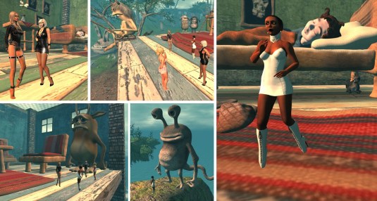When we had finished playing slave Gwendi was not yet inworld. I took Angelique, slave Flo and slave Luci to “Summer in the City” (read about it here) and slave Gwendi joined us there. We had fun and it was a great variation to our everyday Second Life. Angelique and the slaves had a lot to explore and to look at. Angelique liked the little garden next to the luxury penthouse most, Flo like the Club with the African animals.
