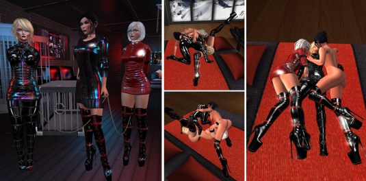 June 28th: Mistress Jenny and Diomita with Angelique, slave Flo and slave Zia at Mesmerize Dungeon and with slave Flo at Psi’s realm
