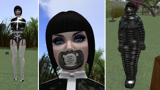 At night Angelique was present. We hadn’t seenher for a while as she was busy in her RL. Soon after we had met with her, Flo showed up as well. Time to play a skipee as teams. That was fun (for Flo and me at least as we won *winks*). For a change we went on a shopping tour after the game. We went to KDC and grabbed the demo of a hood and looked at all the fetish gear there, we went to XO, Velvet Dreams, and Violent Seduction and finally we visited a fair. We didn’t get anything though besides a few demos. It was almost flotime when we moved to Carnal Intentions and Flo left us soon after. We moved to club Domme a Domme for a bit and that’s it already. A relaxed night, where we didn’t just stood around looking good.
