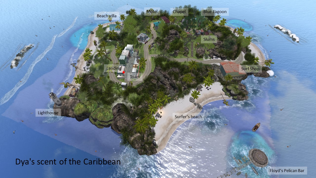 As usual I first zoomed out to get an overview over Dya’s little Jordan. The sim is surrounded by sandstone and granite rock as you can find it in southern Jordan. The landing in on the waterfront right next to a tourist office with some information: