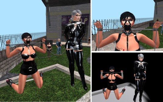 When I came inworld Thursday, September 9th, in the afternoon, Mistress Jenny wasn’t yet present. I went to Puerto Esclava, where Mistress joined me just a few minutes later. I had slave Lily (Lily Bloodrose) in IM and Lily joined us at Puerto Esclava. We spent about an hour there with slave Lily who was eager to give us more control and we let her feel our control. We left her there locked on (short) timers and went on to club Domme a Domme.