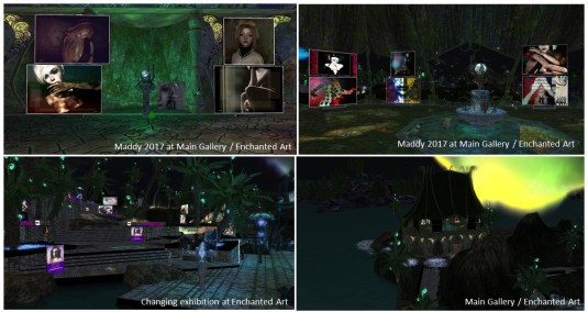 After seeing Enchanted Art, I was not surprised as I was surrounded by glowing colourful plants and a particular fantasy atmosphere upon my arrival at the Emerald lounge. Cerridwens Cauldron consists of several caves, some nice places by the sea and a huge tree that dominates the sim. Exploring it in depth will take many hours, I got just a small insight during my one hour visit. The caves and different levels are connected by stairs, plateaus and spiral stairs. Wherever you turn you get new views, you dicover new things, amazing! I couldn’t decide which light to take for my pictures. Cerridwens Cauldron can be seen in the sunshine as well as at night. At night the glowing effects are stronger and some edges do look better at night in my opinion, but art and taste is nothing you can discuss. Cerridwens Cauldron offers many places to meet, to cuddle and to enjoy as well as several dance floors. It is a prefect place to retreat to with your loved one and to spent a romantic night.