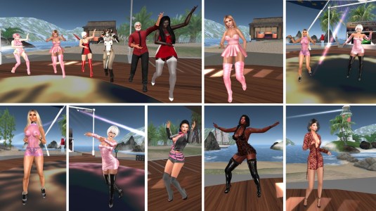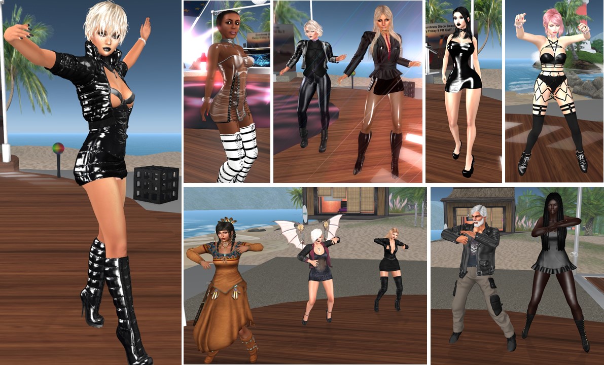 January 17th – Friday night party: (upper row) Claire (maddh4tt3r), Della Randt, Starbright Wingtips, Firefly (rmf361sim), papafox57, Jade (enigmawrappednightmare), Della Randt, slave Gwendi, Diomita / (lower row) slave Gwendi, Diomita, Sara (SaraRandall), Ebony Massey, Virgo Babii