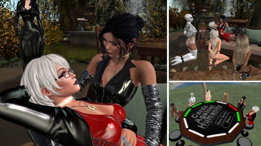 January 16th: Mistress Jenny and Diomita with Ann and slave Flo, slave Gwendi, slave Luci and slave Lara at Trouble Tavern and at home playing Cards against Humanity