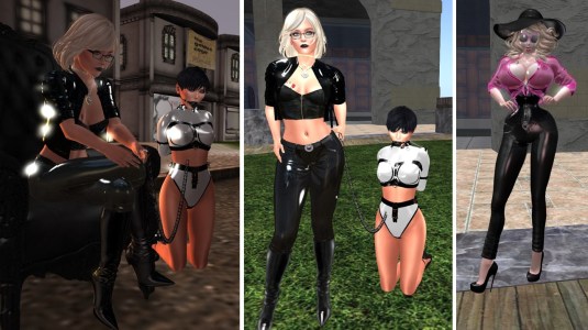 Wednesday, Nevember 20th, Mistress wasn’t around in the afternoon. I chatted with Angelique, sorted my inventory, added to my wardrobe and finally went on a short simploring tour. At night I had just started playing greedy with Angelique and slave Gwendi, when Mistress Jenny and slave Flo came inworld. We finished the game and after quickly catching up with eachother’s news we followed Angelique to a fetish clothes fair and had a look on the newest fashion. Then we went to Mesmerize Dungeon where we stayed for the rest of the night.