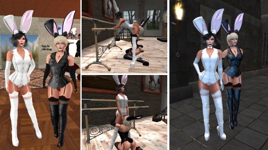 Later in the afternoon I met Mistress again and we changed into our bunny costumes for our party later that day. We rezzed the contest board and Mistress adjusted the region windlight. And I sent out a note for the party: “It is Friday and it is Easter weekend, and what better than to have an Easter Bonnet or Bunny Competition. There will be a reward splitted according to the votes so dress up and have fun. See you later, friends .. we look forward to seeing you and your outfits.”