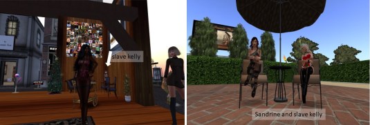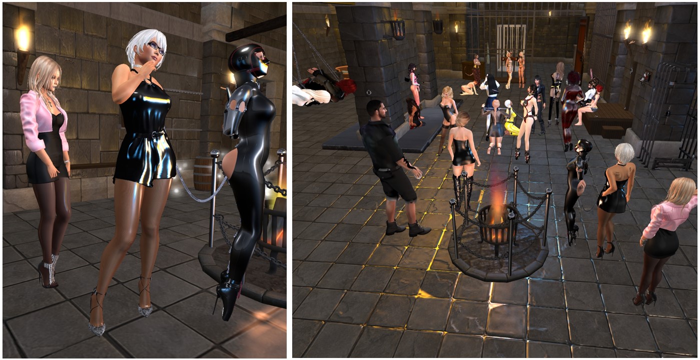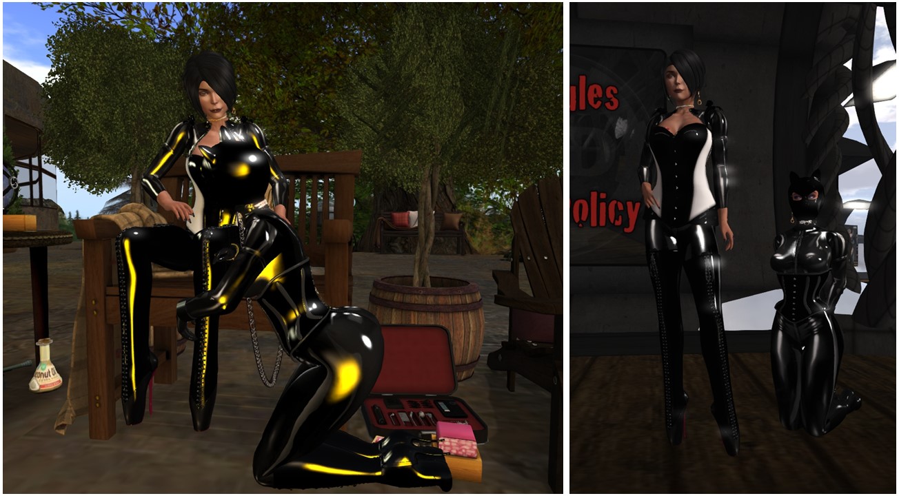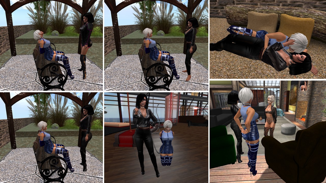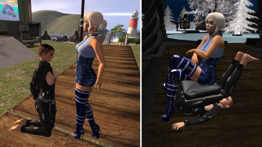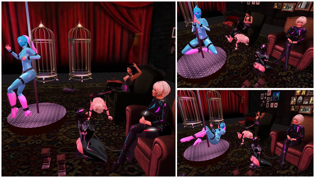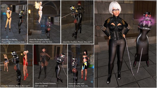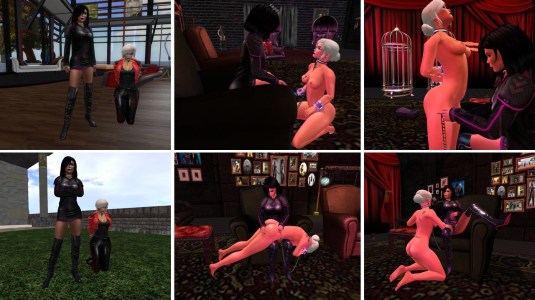 We took her to Psi’s realm to wind down and dry. It was full and there was a lot going on at Psi’s realm. slave Pam (Pamela Emmons) was present and knelt by our side while we watched and listened for a while. Then it was already time for us to return home. I retreated with Jenny to our skybox and I took control. Jenny had granted a green light and it was about time I took it. I locked a vixen collar around her neck and we went to the annex of the skybox, “my” annex for green lights. But be it a green light or not, I had to satisfy my addition first and licked my property to enjoy her juices – always a feast.