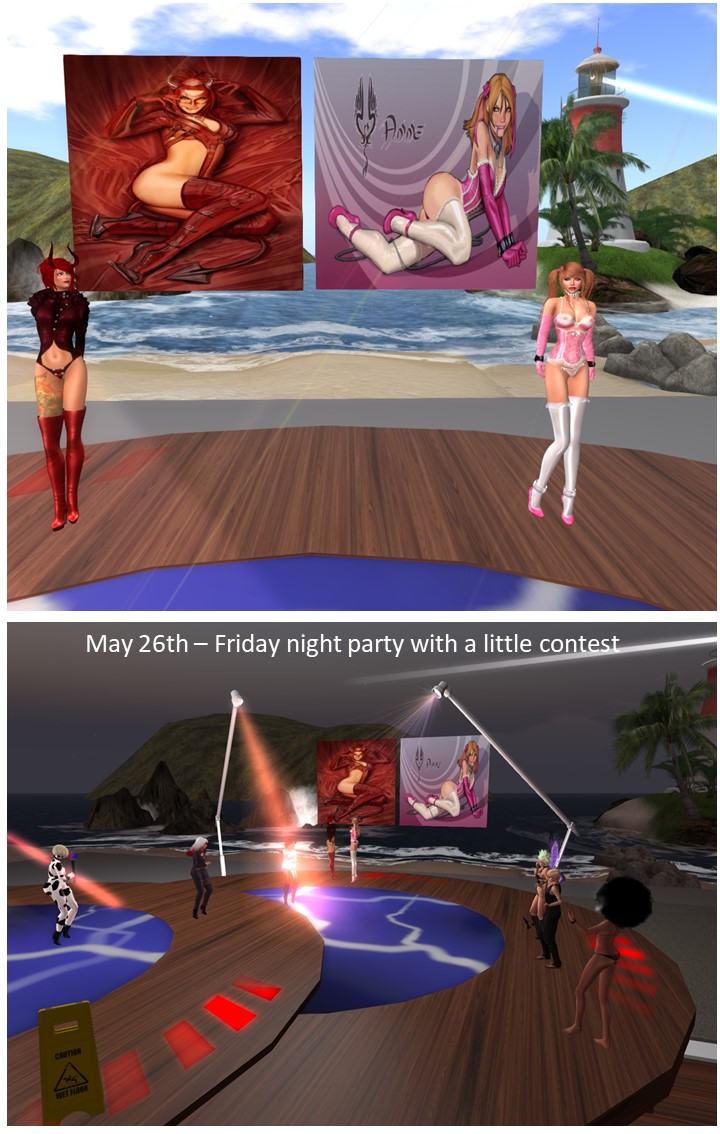 Friday, May 26th, we had our regular party again with a small extra event. Fin gave Tyra and Virgo an assignment. Both got a picture of a female model and should try to dress as close as possible as their model. Virgo put up the two pictures and everyone was asked to vote who of the two succeeded best in dressing like the model. I collected the votes and we all had fun with it. Both did very well and were dressed quite the same as their model. Well done, Tyra and Virgo. For the records: Tyra won the little contest – congratulations.