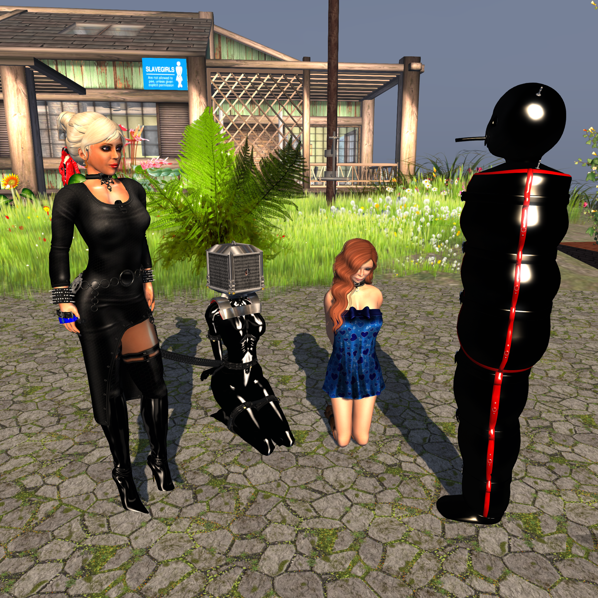Our family changed … slaves and subs came and left. In 2012 we collared Angelique. Angelique Maurer became a close family member. She became our niece and as our niece she literally grew, she persued her own way and her own way of roleplay. And more and more we became her aunts, providing a stable family and base for her just like in RL. Angelique was never officially released by us, and we loved to have her around – as our niece. In these hard days of grieving for Jenny, I am very happy to her her around.