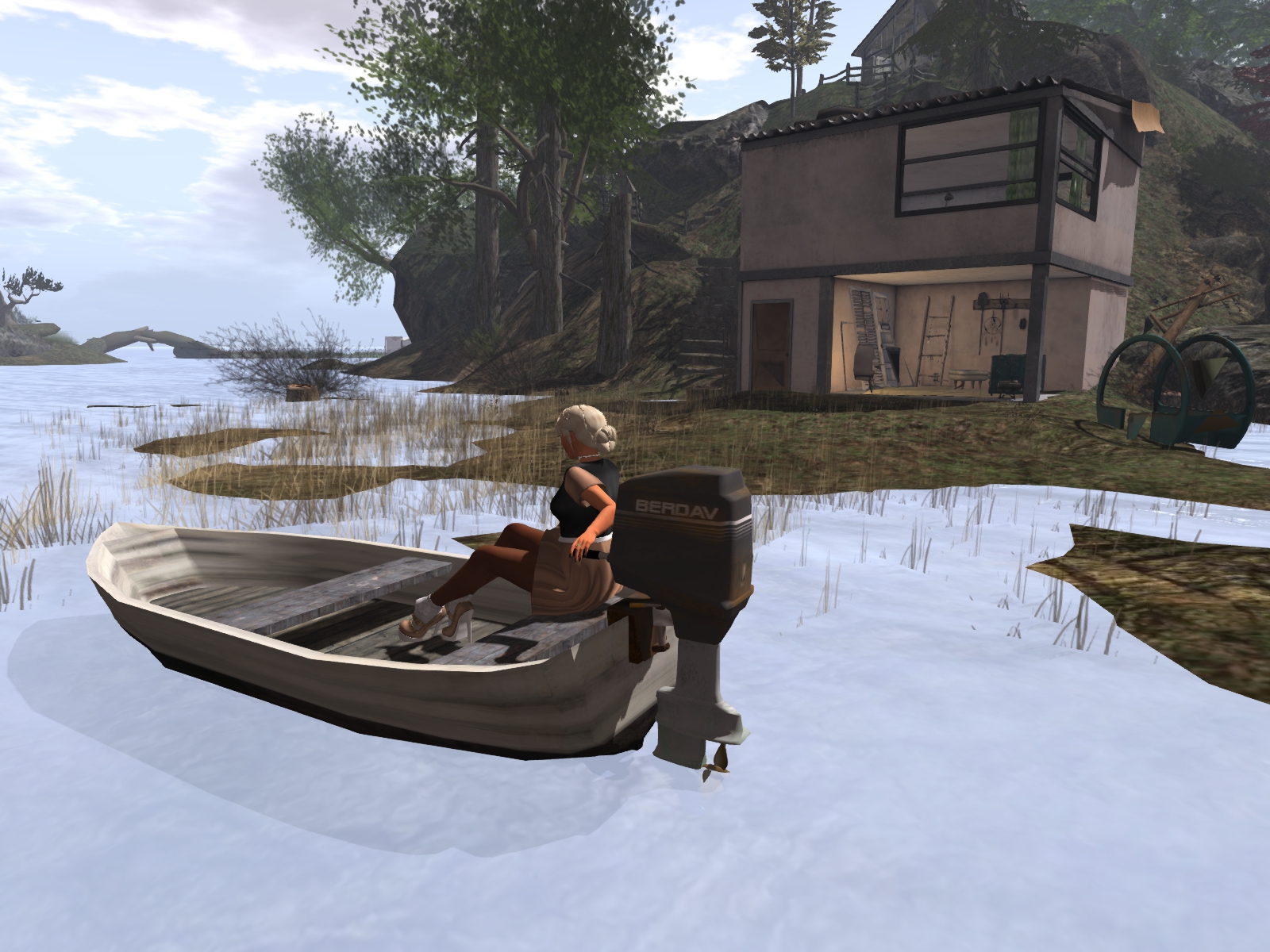 The landing point of Nantes is in a small hut by the sea. Here you can join the group in order to be able to visit. The fee, Ms. Nantes mentioned above, is 250 L$ (approx. 1 US$) and will contribute to keep the sim alive. From here you can either start exploring on foot or you take the teleporter to Nantes Gallery or to Ms. Nantes store, e.posEd. The store is located in a skybox above Nantes and offers animations. The Nantes Gallery is located on the sim itself. I decided to explore on foot and not far from the landing hut I found a teleporter map, that gave me a nice overview. Yet I continued simploring on foot.