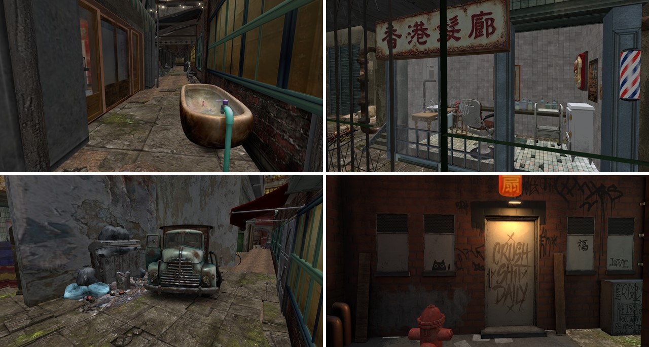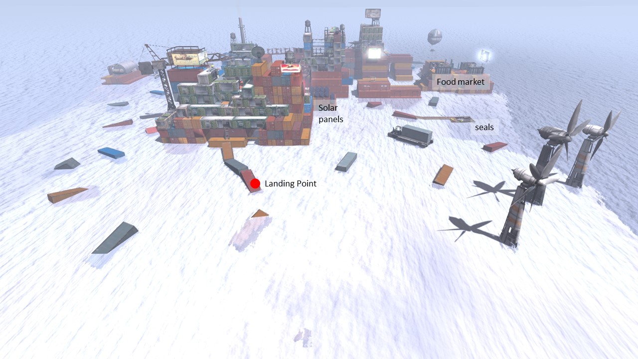 The “Lights-Building” is another landmark of Marfa, Tx. in RL. It has a pertciluar egg form and daylight just comes through a small gap in the ceiling. The entrance and the exit are built in a waythat avoids any light coming it. Marfa is renown for its art. And you find it spreaded around the town. There’s the renown Prafa store, a care on a concrete box, a large board showing James Dean (I think at least) next to a scaffold in the middle of nothing