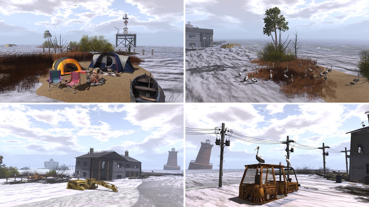 “Black Bayou Lake (link to wikipedia) – the inspiration for our sim – is located in Ouachita Parish, Louisiana. The lake is part of an 800 acre nature reserve – there is a factsheet about it here – which seethes with wildlife: there are many species of bird, insect, reptile and fish, along with a variety of trees such as cherrybark oak, cedar elm, ash, hickories, willow oak, shortleaf pine, loblolly pine, mockernut hickory and post oak. It’s a stunning place, which attracted us because we had not yet tried designing a sim that consists mainly of water…...”