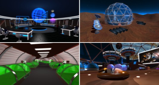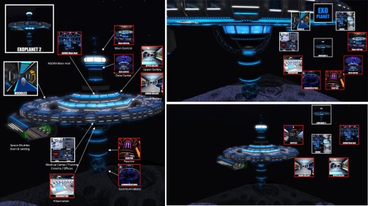 I stepped out of the spaceship and walked around a bit. I found a seating opportunity where I could watch. I turned the music on and watched the scenery for a while. You can relax and enjoy! Then I further explored … walked over the edge and could walk down for a while before gravity kicked in and I was on another part of the planet or star.