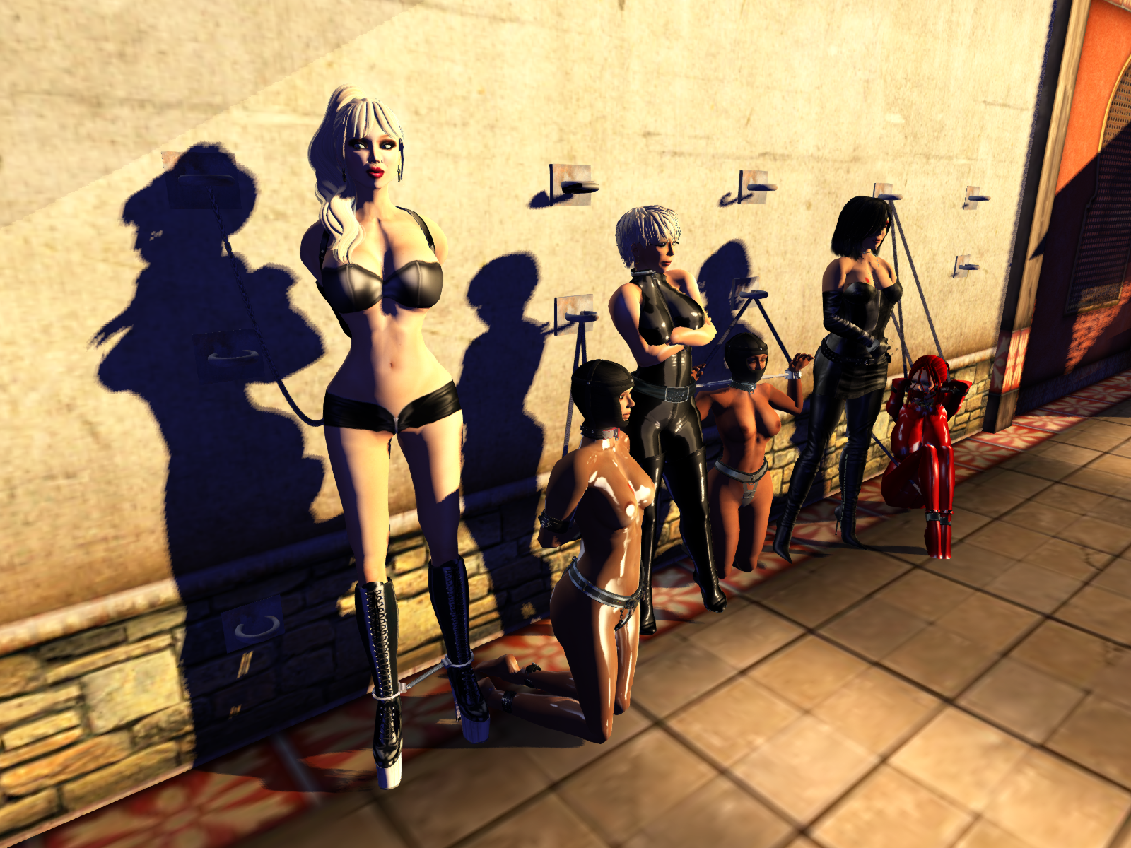 We met Angelique and slave Flo at home and were about to take slave Flo to a club, when slave slut cecy came inworld. She was literally hanging around where we left her a week before, at Psi’s realm. We went there and stayed the whole night. It was full and step by step we locked up other subs. We had a little bondage night. Brie (brie4675), Gero (Geronimo Grantham) and Rareity1977 were tied up next to slave slut cecy. And slave Flo had to watch our fun. Argi joined us as well, actually she joined us twice and could see the number of tied up subs increasing. It was a fun night.