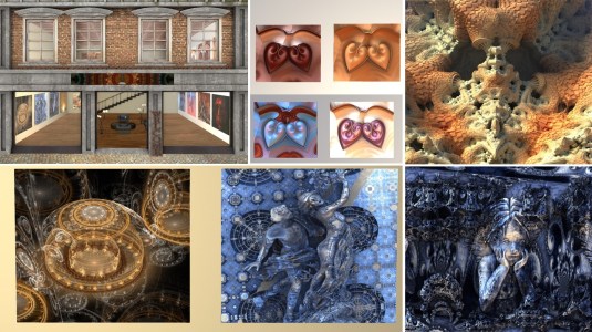 Etamae is from the UK and began transforming her pictures from the things she has seen and loved in Second Life into something else, in digital art in 2018. Etamae is not defined by just one style or area of art, she plays with different patterns and tries herself out in a broader spectrum of art. The current exhibtion at HEA-Gallery proves her attitude to try out different forms of art. She got help from friends to get the necessary building and scripting knowledge – and created something new. Thank you Etamae!