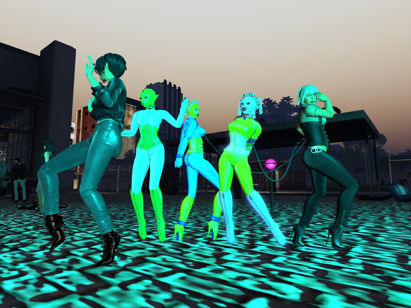 On Thursday afternoon, April 5th, Jenny and I went over to Shades of Emotion to explore it. It is on a sky platform and the landmark leads you directly to the dancefloor. The club area is huge, there’s not just the large dance floor and quite some boards. There’re also places to sit and for dice and cards games nearby. Jinty herself was present as well as Lady Harcassle, who welcomed us. Lady Harcassle owns the sim, Jinty Darkwatch owns Shades of Emotion.