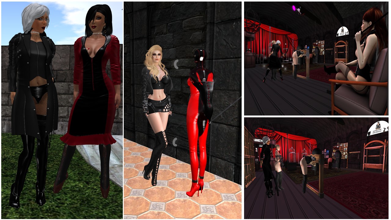 August 28th: slave Christin and slave Gwendi dancing at club DeLust / Mistress Jenny and Diomita with slave Christin, slave Gwendi and slave Flo at home (lower right)