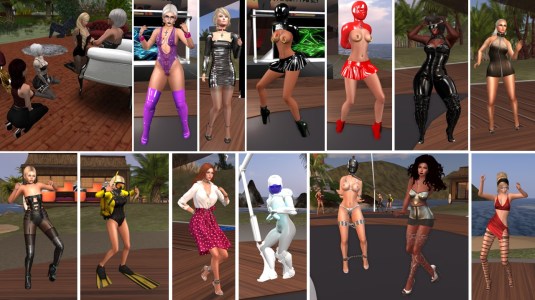At night I continued talking with Kari and taking further control. We all gathered at the decking …. Kari, Angelique, slave Holly, slave Alessi, Zana, Scarlett (Echo Kavanagh), Phoa (Phoa Oh) and I. Zana, Phoa, Scarlett and Kari had to leave though before the party started at 10 PM (1 PM SL time).
